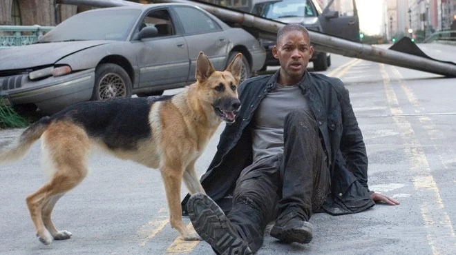 Co-vedette avec Will Smith de ce film sorti en 2007 et adapté du roman d’anticipation Je suis une légende, Abbey (Sam dans le long-métrage) est une femelle berger allemand qui a été découverte par hasard dans un chenil californien par le responsable animalier et dirigeant de la société Animals of Distinction, Steve Berens, et spécialement dressée pour le film.