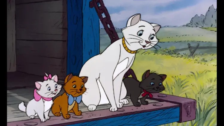 Sorti en 1970, Les Aristochats se déroule à Paris au début du XXème siècle. Il raconte l’histoire de Madame de Bonnefamille, millionnaire excentrique, qui vit seule entourée de ses chats : Duchesse et ses trois petits, Marie, Toulouse et Berlioz. Un jour, elle convie son notaire pour désigner ses compagnons à quatre pattes comme héritiers et leur léguer toute sa fortune.
