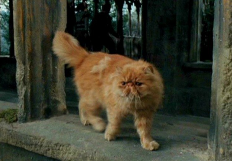 Fin des années 1980. Alors que J.K. Rowling n’est pas encore l’autrice à succès que l’on connaît aujourd’hui, la jeune femme aperçoit régulièrement un gros chat roux tout ébouriffé. Ce chat, l’autrice s’en souviendra toute sa vie, et s’en sert quelques années plus tard lors de l’écriture de son roman, Harry Potter à l’école des sorciers, pour incarner Pattenrond, l’animal de compagnie d’Hermione.